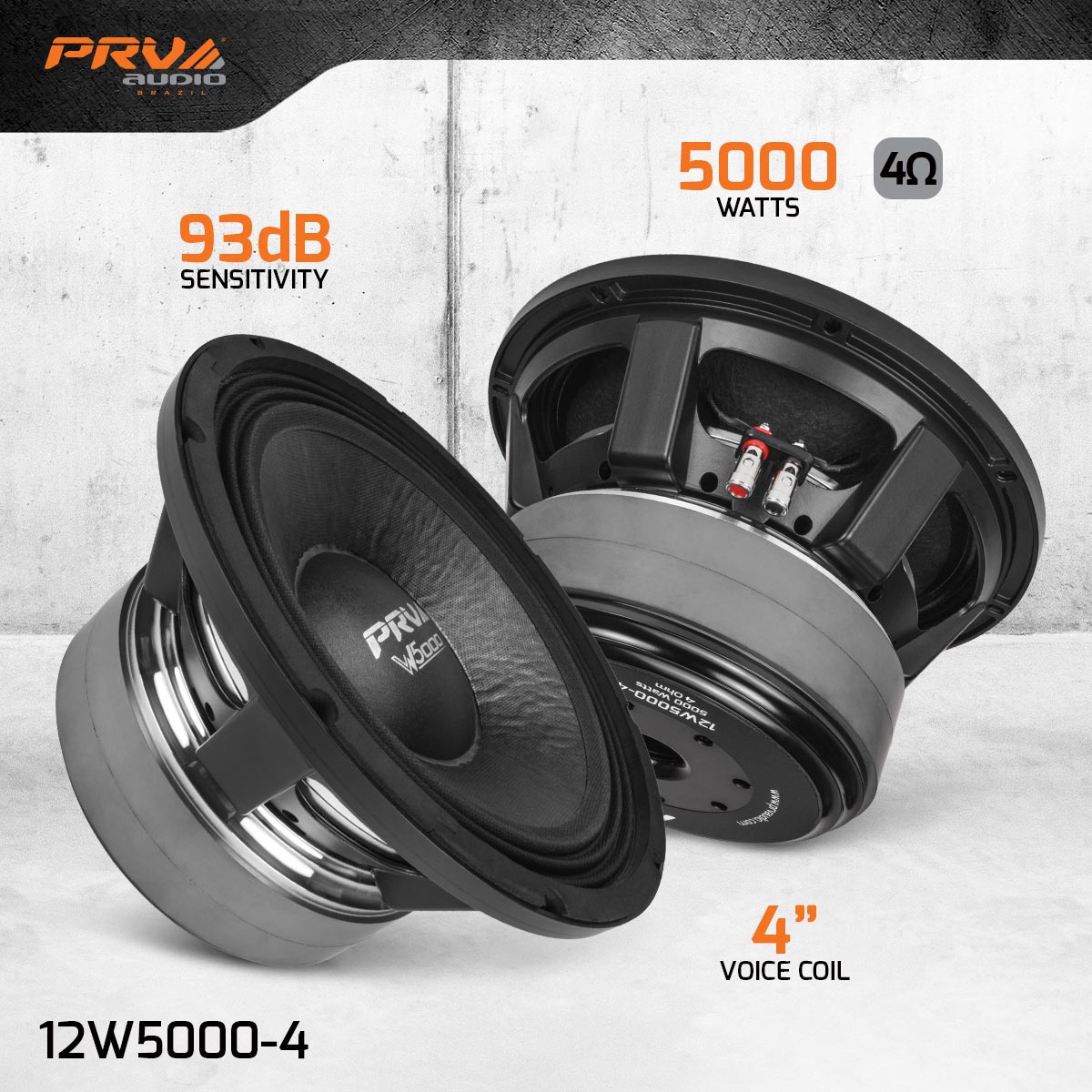 • 4 Ohm Voice Coil, Able to Handle 5000 Watts RMS +
