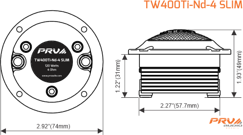 Add detail to any speaker with PRV Audio’s TW400Ti-Nd-4 SLIM 1″ exit titanium super compact bullet super tweeter!
