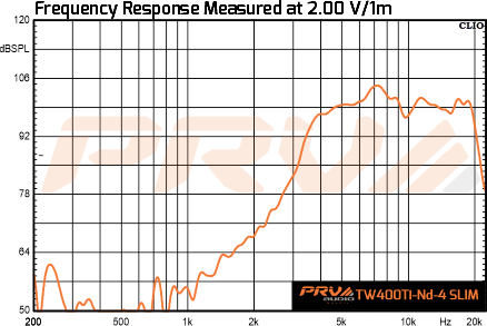 The PRV Audio TW400Ti-Nd-4 SLIM Super Tweeter offers a smooth response and extremely high efficiency from high mid range through high range frequencies. This compact tweeter is part of a wide family from the TW400Ti-Nd Series, featuring a strong neodymium motor which increases its efficiency and lowers its weight and size dramatically without compromising any performance.
